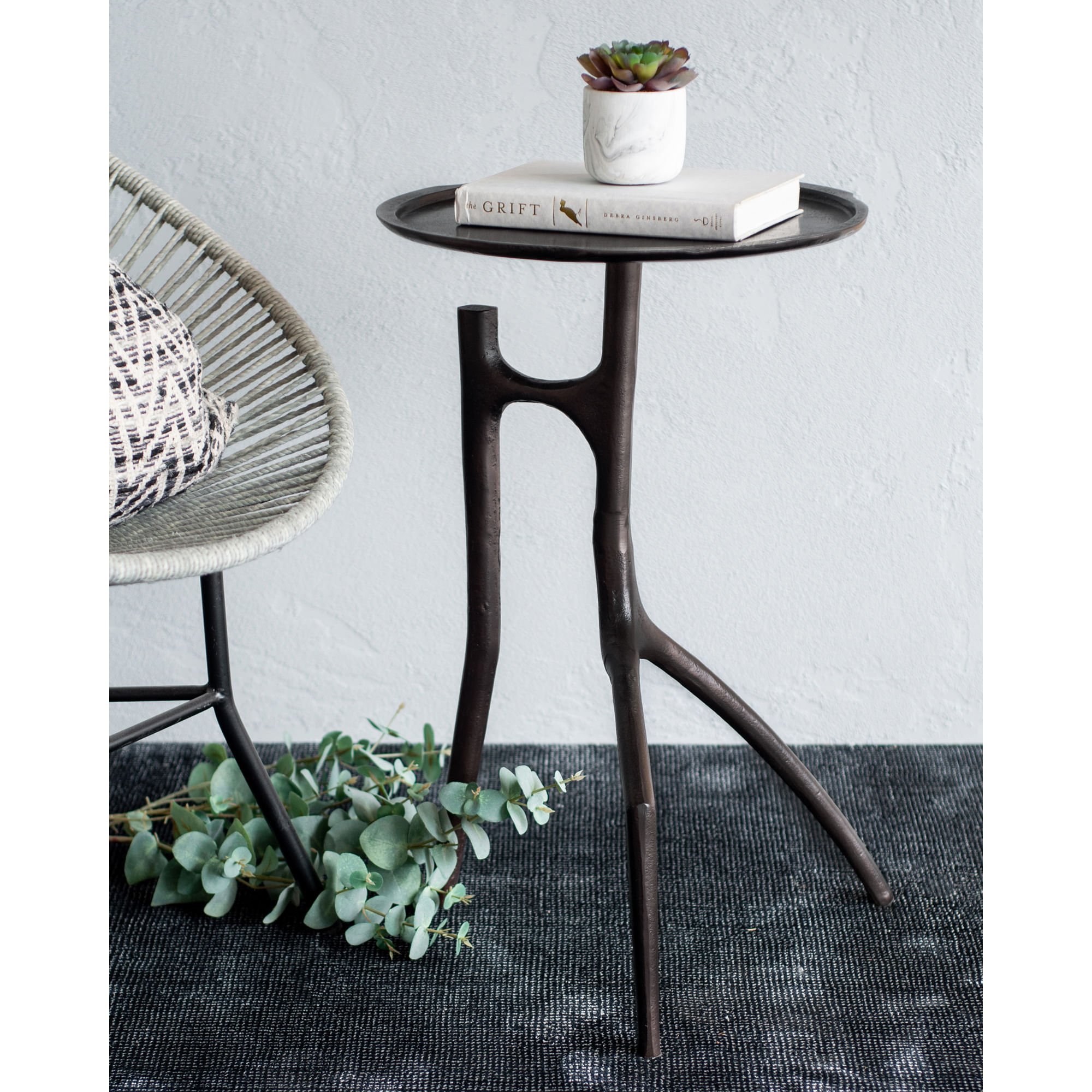 This side table takes inspiration from organic elements and carries it into the interior. Composed of plated aluminum, its simple colour palette allows its design structure to take the spotlight. Standing at 25 inches in height, it brings versatility into the home.
