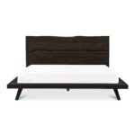 Add a soothing, natural touch to your bedroom. The Madagascar bed is made from solid acacia wood bed featuring a low platform design, with an organic edge headboard joined by a butterfly technique in woodworking. Solid steel legs in a black, powder-coated finish, provides a rustic – industrial overall look.
