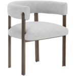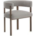 This beautiful dining armchair is designed with style and elegance. Features a contemporary barrelback seat in ernst silverstone fabric with a powder coated steel base in a gold finish.