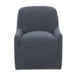 For movers, loungers, and multitaskers. Maisie doesn’t sit still, and neither do you. With a generously padded seat, curved back, and smooth-rolling casters, it’s built for swiveling between snacks, spreadsheets, and second helpings. Wrapped in soft fabrict upholstery, the tailored silhouette looks sharp at the table and right at home wherever it lands.