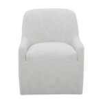 For movers, loungers, and multitaskers. Maisie doesn’t sit still, and neither do you. With a generously padded seat, curved back, and smooth-rolling casters, it’s built for swiveling between snacks, spreadsheets, and second helpings. Wrapped in soft fabrict upholstery, the tailored silhouette looks sharp at the table and right at home wherever it lands.