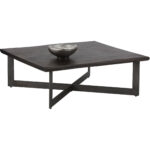 This square coffee table combines rustic and industrial elements perfect for transitional spaces. Featuring a solid acacia wood top in a rich walnut brown finish, with a contrasting antique gunmetal steel base. As wood is an organic, porous material, these pieces will contain natural variation of texture and may also exhibit fine indentations and cracks. Wood pieces will also display a disparity of colour and grain, and visible knots and burls that add to the character of each piece.