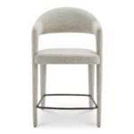 The Martens counter stool features an open barrel back and a continuous curve from leg to frame. Its Performance fabric is complemented by generously padded seating, marrying comfort with a clean, uncluttered design. Armrests introduce a note of formality, while the airy back lends a touch of lightness and sophistication.