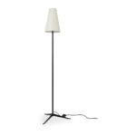 The Mathis floor lamp embodies mid-century elegance with its slender silhouette and tripod base. A vintage-inspired metal stand supports a tapered linen shade, diffusing a soft, inviting glow adding understated sophistication, whether illuminating a reading nook or anchoring a living space.