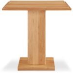 The May counter table’s unique double square top and rectangular post leg create an intriguing visual harmony. Crafted from solid oak, the table exudes warmth and natural beauty. Subtle curves and angled edges offer ergonomic comfort, inviting lingering moments, effortlessly transitioning from cafe table to entryway accent.