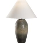The Megumi Table Lamp, part of the Shiga collection, is hand turned and finished in one of six ancient kilns in Japan. The elements from the soil of Shiga create this earthy toned ombre finish on a classic jar shape lamp completed with cloth wiring and topped with a refined rolled-edge linen shade. Made in Japan.