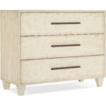 - Finish: Textured cream colored finish with cream drawer interior and antique pewter ribbed bar pulls