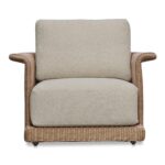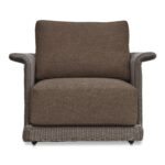 The Meredith accent chair’s graceful tulip silhouette and curved armrests create visual interest, while generous cushioning offers indulgent comfort. Artfully woven synthetic wicker over an aluminum frame marries durability with aesthetic appeal. Quick-dry foam and Dacron fiber ensure lasting resilience, while the sophisticated hue complements various exterior designs.