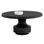 Accentuate any dining area with the stunning Mersin Dining Table. Constructed from black glass fibre-reinforced concrete, this piece has a remarkable hand-hammered design on the table top and base. Brass coloured accents emphasize the textured look.