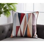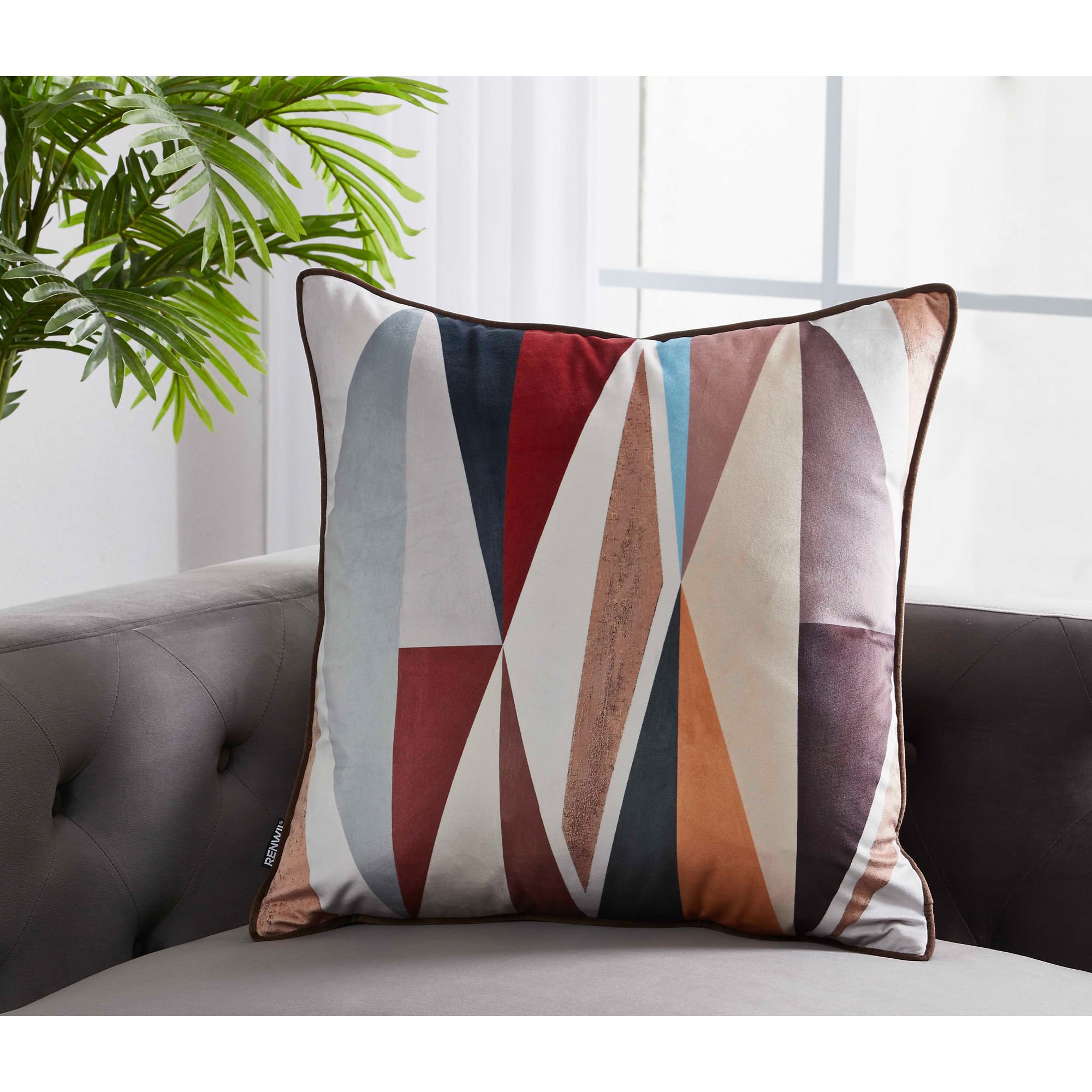 Geometric influence and contrasting vibrant tones take the spotlight in this design. Placed in the mid-century or modern living room space, its abstract appeal will fit in seamlessly. Its velvet feel provides great comfort, adding warmth and softness to the space.
