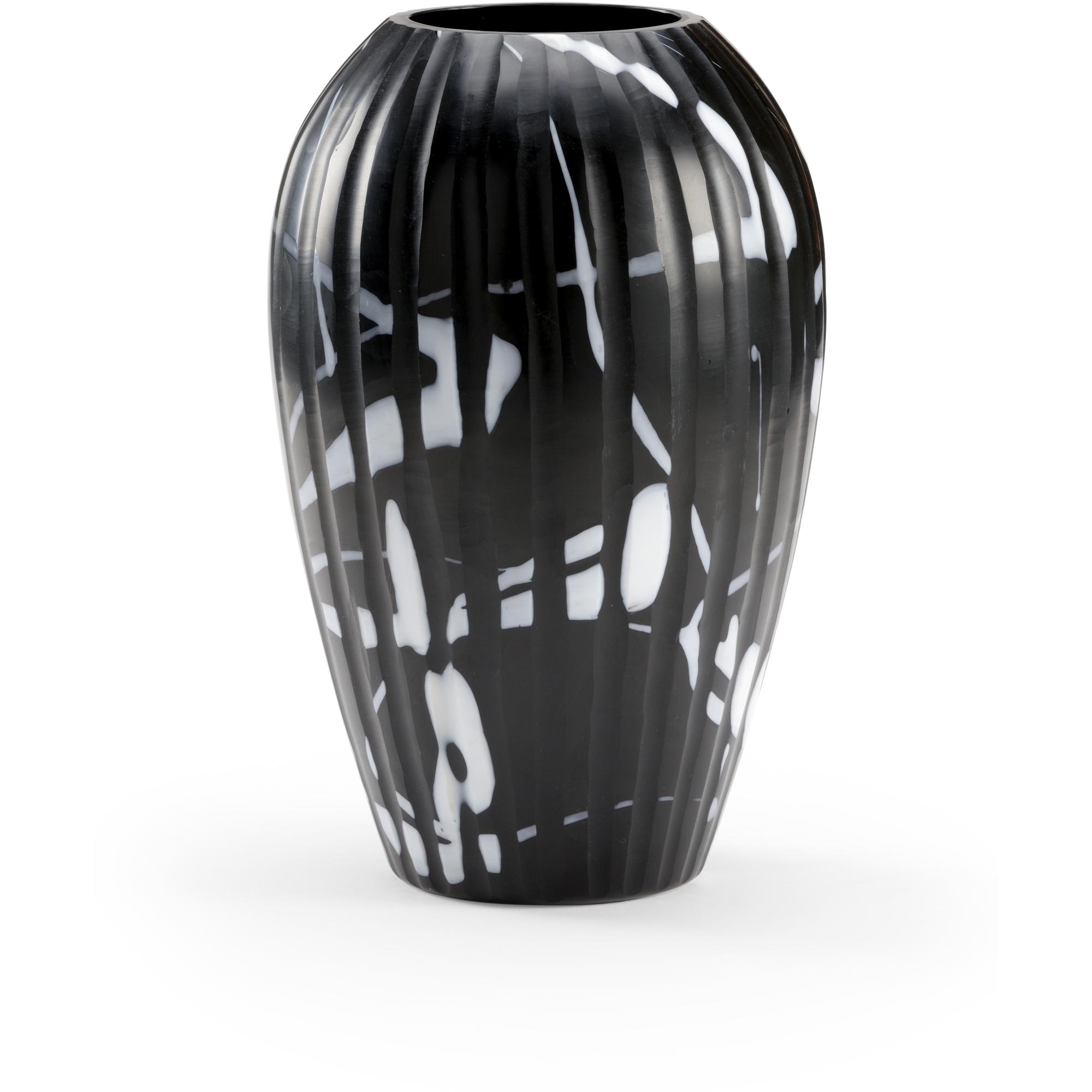 Black and white abstract design cut glass vase. True piece of art.