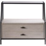 Built with an open display area and two spacious drawers, the Midtown Nightstand is defined by a regal Flannel finish and is accentuated by two matte black bar hardware pulls.
