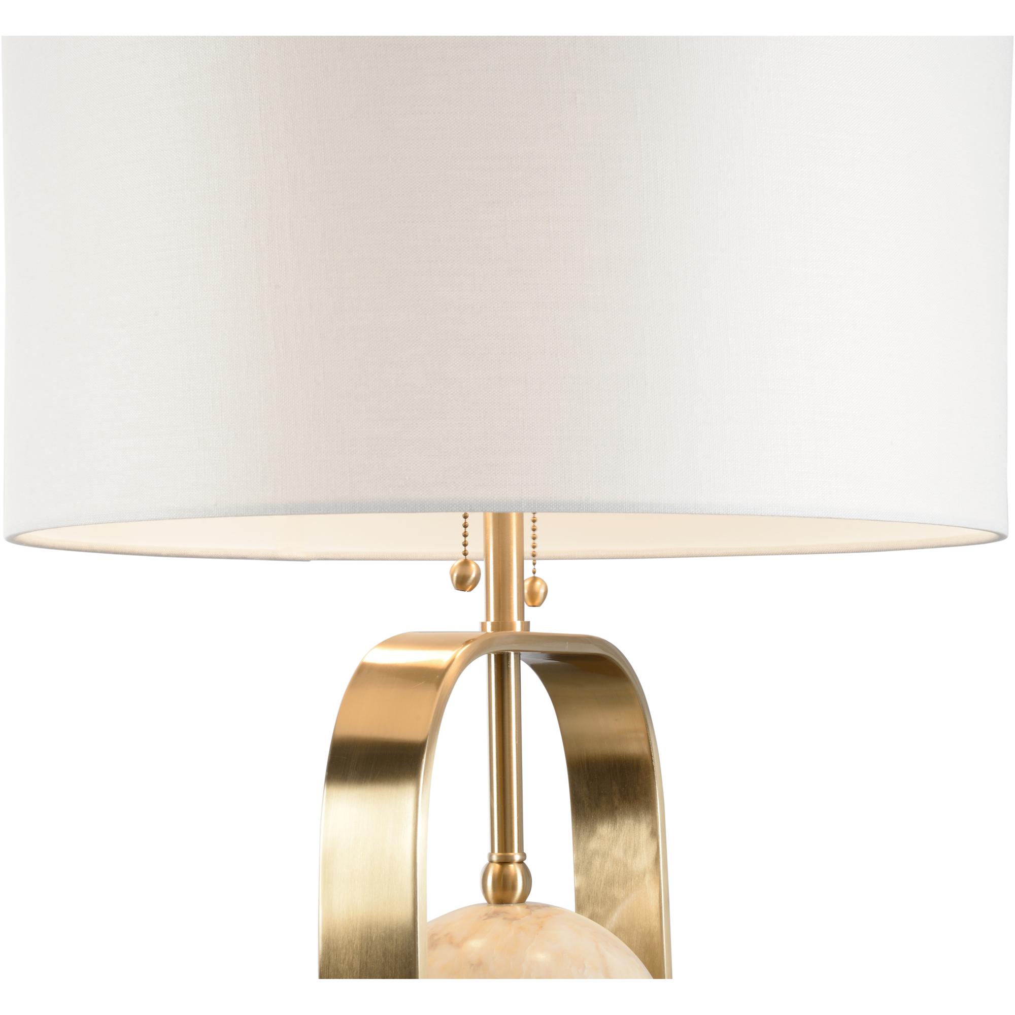 Illuminate an elegant modern space with milazzo lamp. The warm metal base has a coffee bronze finish and features a natural calacatta gold marble orb. This two light accent lamp has pull chains and is topped with an off white linen drum shade, ideal for living areas and bedrooms.