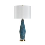 Graced with a deep blue glass body, brushed bronze details and a crisp white faux linen shade, this table lamp has everything you need for dazzling style. Add it to any room in your transitional design project for adjustable ambient light and a look that’s worthy of your stamp of approval.