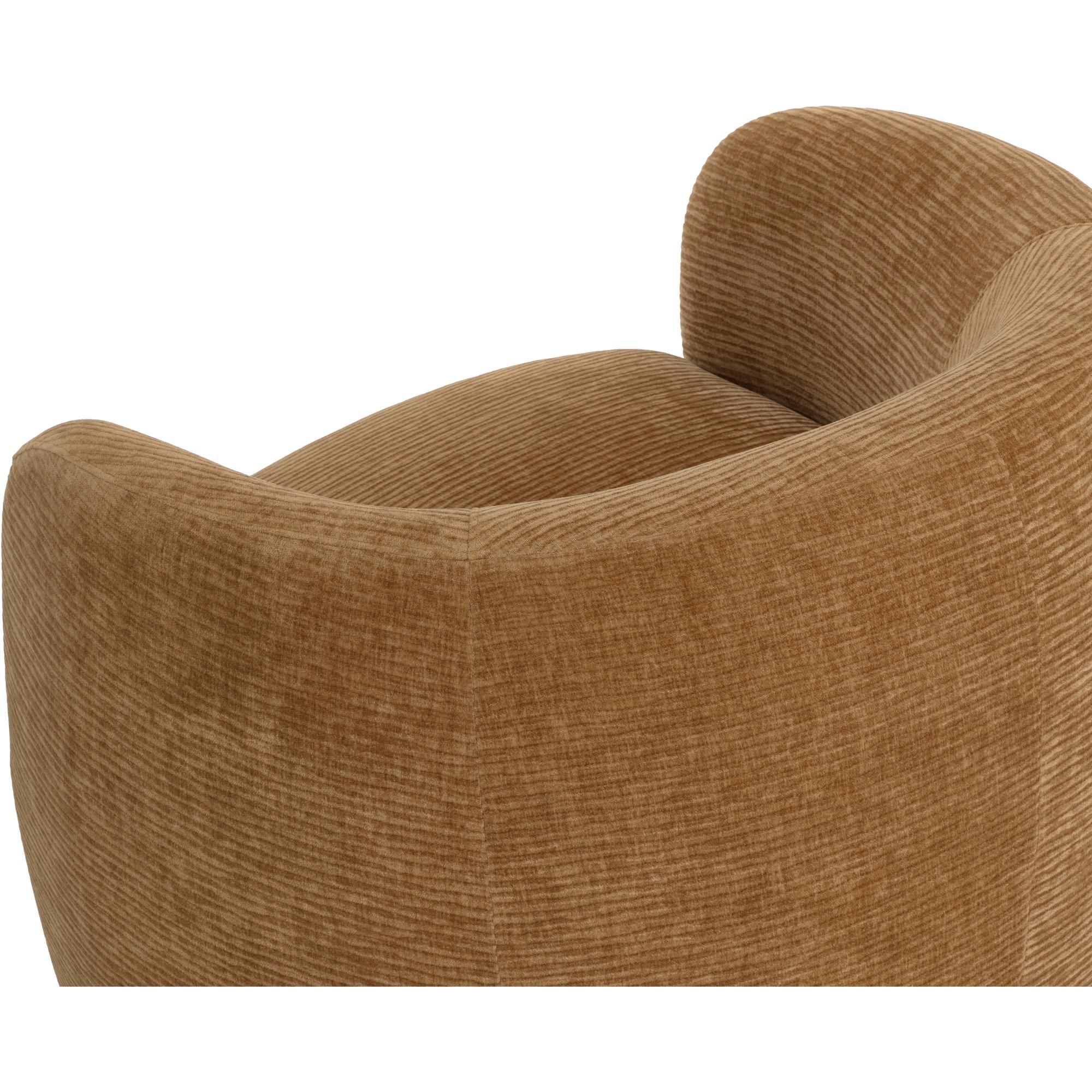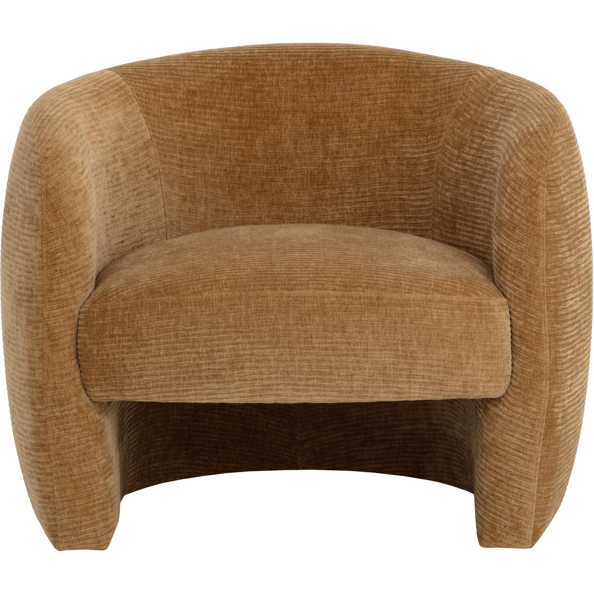 Add a stylish flair to any contemporary living space with this curved lounge chair. Features a sculptural frame that is fully upholstered in opera butterscotch fabric.