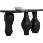 The Miro Console expresses the uniqueness of organic-inspired modern design with its droplet legs and top. Masterfully sculpted in solid polished brown ash wood and with a smooth asymmetrical top, this console showcases the beauty in irregularity.