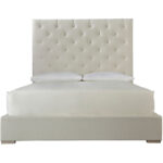 The glamorous Brando Bed is defined by an oversized, button tufted headboard upholstered in a white performance fabric.