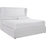 Elevate bedroom spaces with the Delancey Bed, a fresh take on a classic style featuring a performance upholstered body and a subtle wing-inspired details