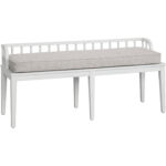 The genteel Finn Dining Bench features a plush upholstered body and white-hued tapered legs, offering both comfort and function.