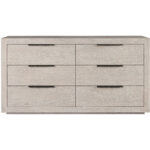 Defined by a clean Quartz-finished wood and textured bronze pulls, the Huston Dresser features six roomy drawers and convenient jewelry storage.