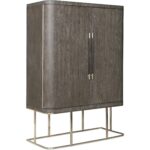 - Finish: Diamond finish: flat cut quartered oak veneers with wire-brush detailing in a light finish with crystal-like alabaster and pewter hues delivering a soft sophistication. Brushed metal in warm pewter finish. Bar pulls wrapped in leather.