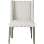 Offered in a selection of three gorgeously neutral hues, the Tyndall Dining Chair exudes a clean and effortless charm with its subtly tapered legs and delicate nail head trim.