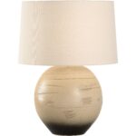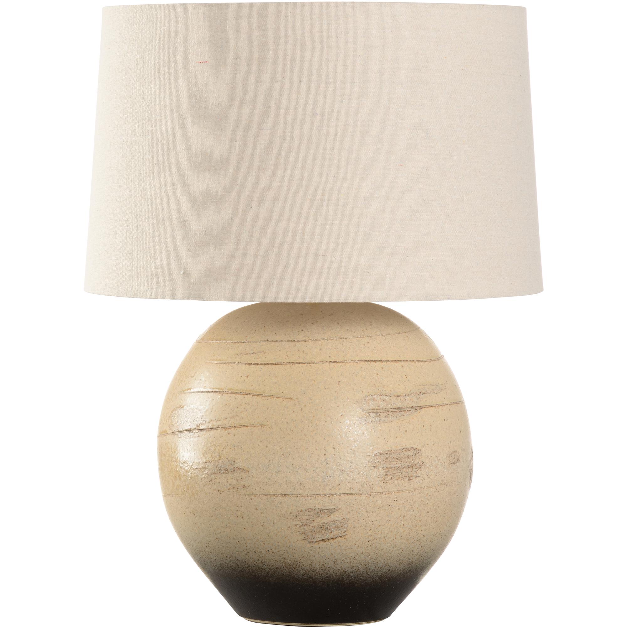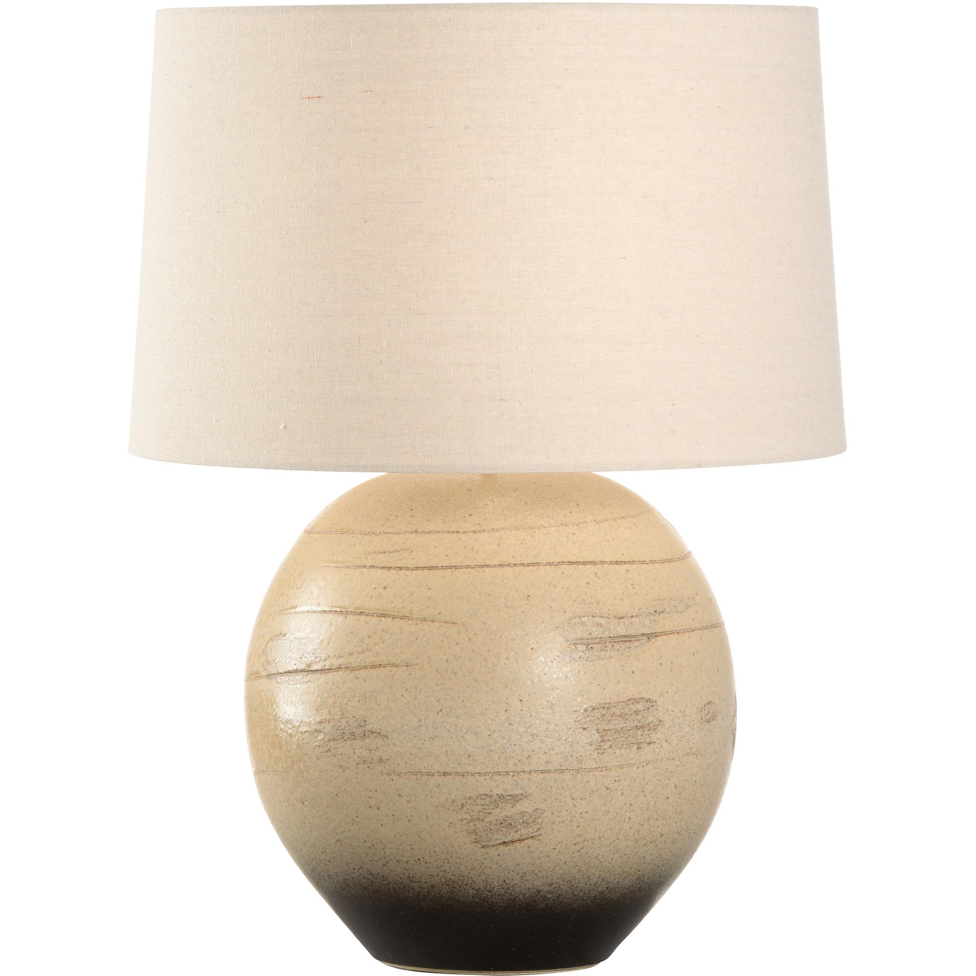 The Moriko Table Lamp, part of the Shiga collection, is a beautifully crafted piece that draws inspiration from the natural elements of Japan. Hand-turned using sandy clay sourced from the bed of Lake Biwa, this lamp showcases the unique textures and tones of its native material. The subtle ombré effect transitions from light, earthy beige at the top to a deep, dark hue at the base, creating a harmonious gradient.