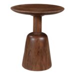 Sculpted serenity. Built from solid acacia wood, the Nels end table puts the materials front and center, serving as a natural showcase for the woodgrain. Its tastefully sculpted form features a broad base and a simple round tabletop, a pedestal for beautiful happenings. For a perfectly simple take on contemporary design, look to Nels.