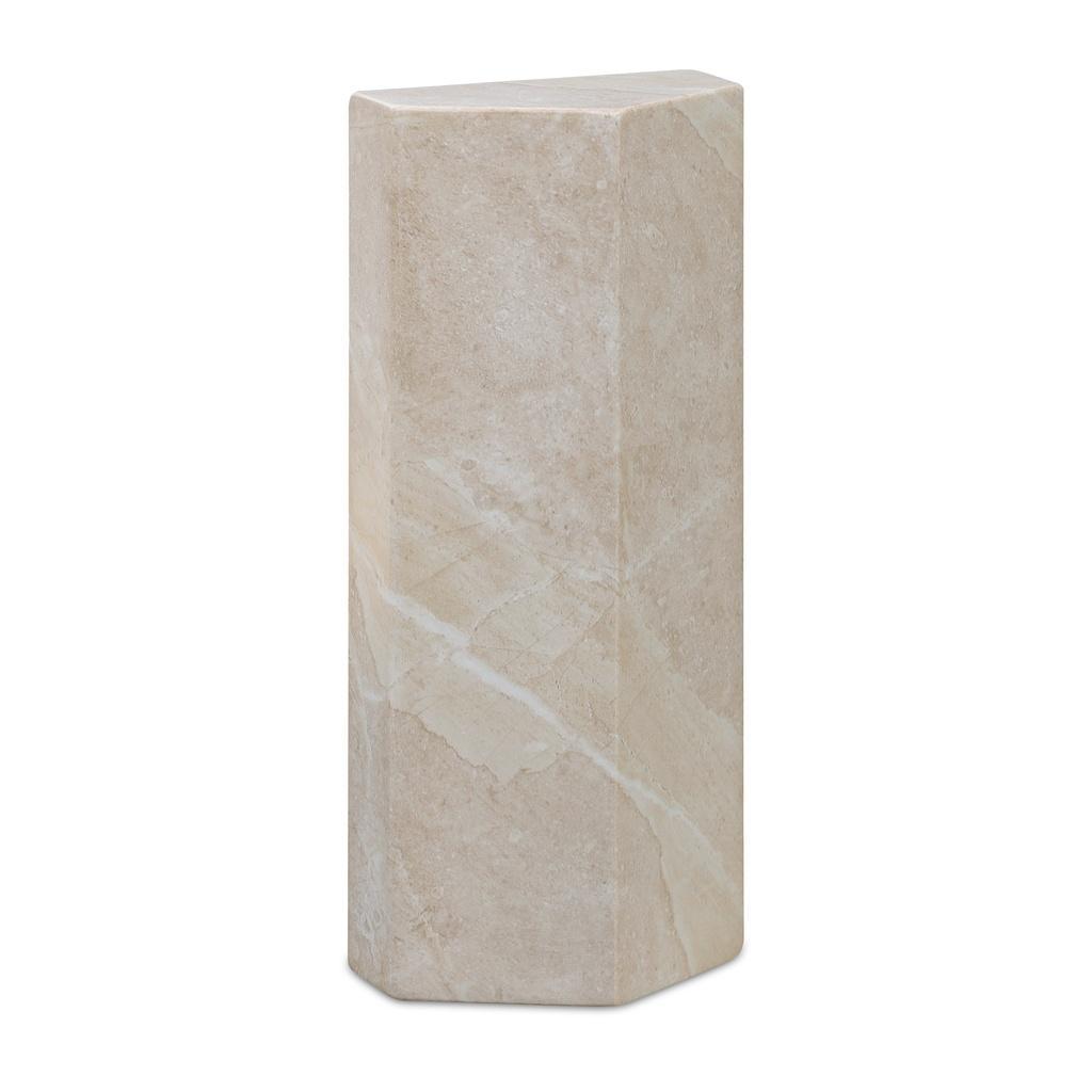 Because even your side table deserves main character energy. This five-sided accent piece brings serious presence, with sculptural form and bold texture. Cast in concrete and finished using a water-transfer technique, it mimics expressive marble veining with natural variation across every surface. Durable enough for the patio, striking enough for the living room.