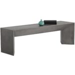 Simple and refined, this concrete bench has sharp lines that create visual interest towards the inner frame. Crafted from white concrete with variations of white that will enhance over time. Suitable for indoor and covered outdoor spaces. Also available in natural grey and white marble look concrete.
