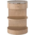 Showcasing a free-spirited silhouette, the Round Nightstand pushes design boundaries with its half-moon shaped shelves and a complementing marble top.