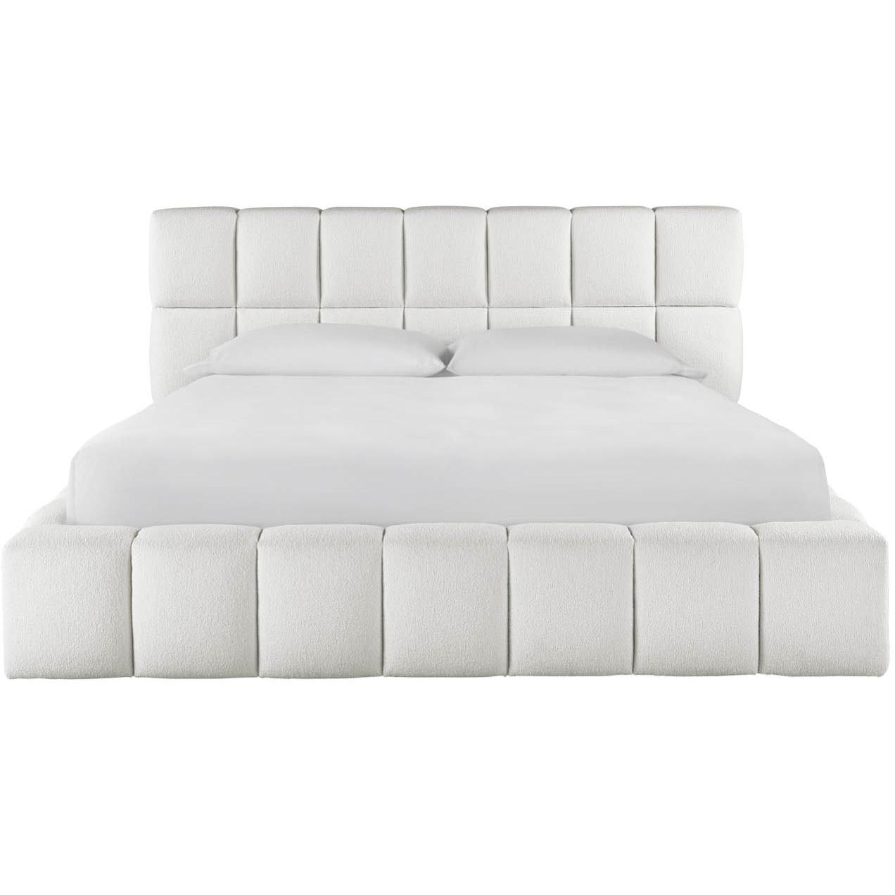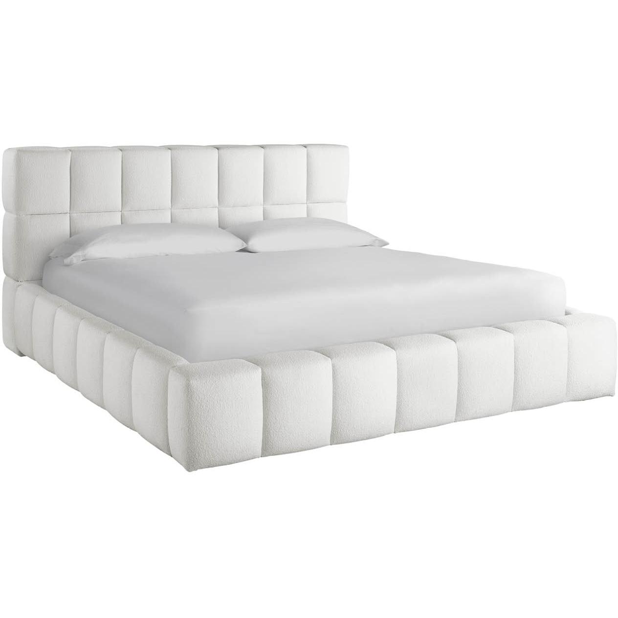 Center bedroom dwellings with the Upholstered Platform Bed, a comfort-forward piece formed with a series of rolled cubes in a plush fabric.