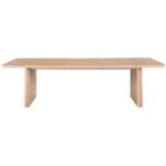 The Rectangular Dining Table instantly grounds interior aesthetics with its confident, fully oak-finished body and its robust, subtly-playful base.