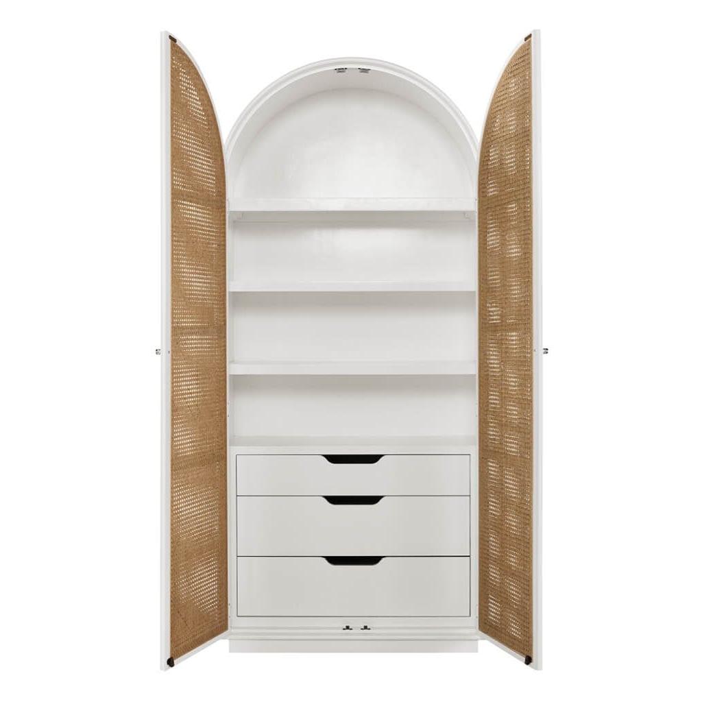 The Utility Cabinet will instantly bring a sense of calm and focus to any space with its fully-woven cane doors strikingly complemented by a crisp white frame.