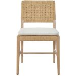 The lighthearted Woven Side Chair fuses a woven Danish cord back, oak-finished legs and a plush white seat cushion, making for a delightfully modern seat.