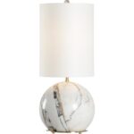 Enhance your credenza or buffet with a pair of our lustrous marble table lamps. Guaranteed to be a primary decor piece, novara features a 12″ orb of natural carslan marble with warm coffee bronze details. The white linen drum shade adds height as it diffuses ambiant lighting throughout your modern home.