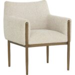 The Olea Lounge Chair is the masterful union of mid-century technique and contemporary ease. Versatile enough to accompany any space and boasting a charming silhouette with bronze powder-coated steel legs that emphasize the smooth texture of milliken cognac faux leather.
