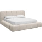 Embrace the luxuriously plush and cozy Olena Bed. A true statement piece that is generously cushioned and upholstered in smooth meg ash fabric with vertical channels. No box spring is required and folding slats are included.