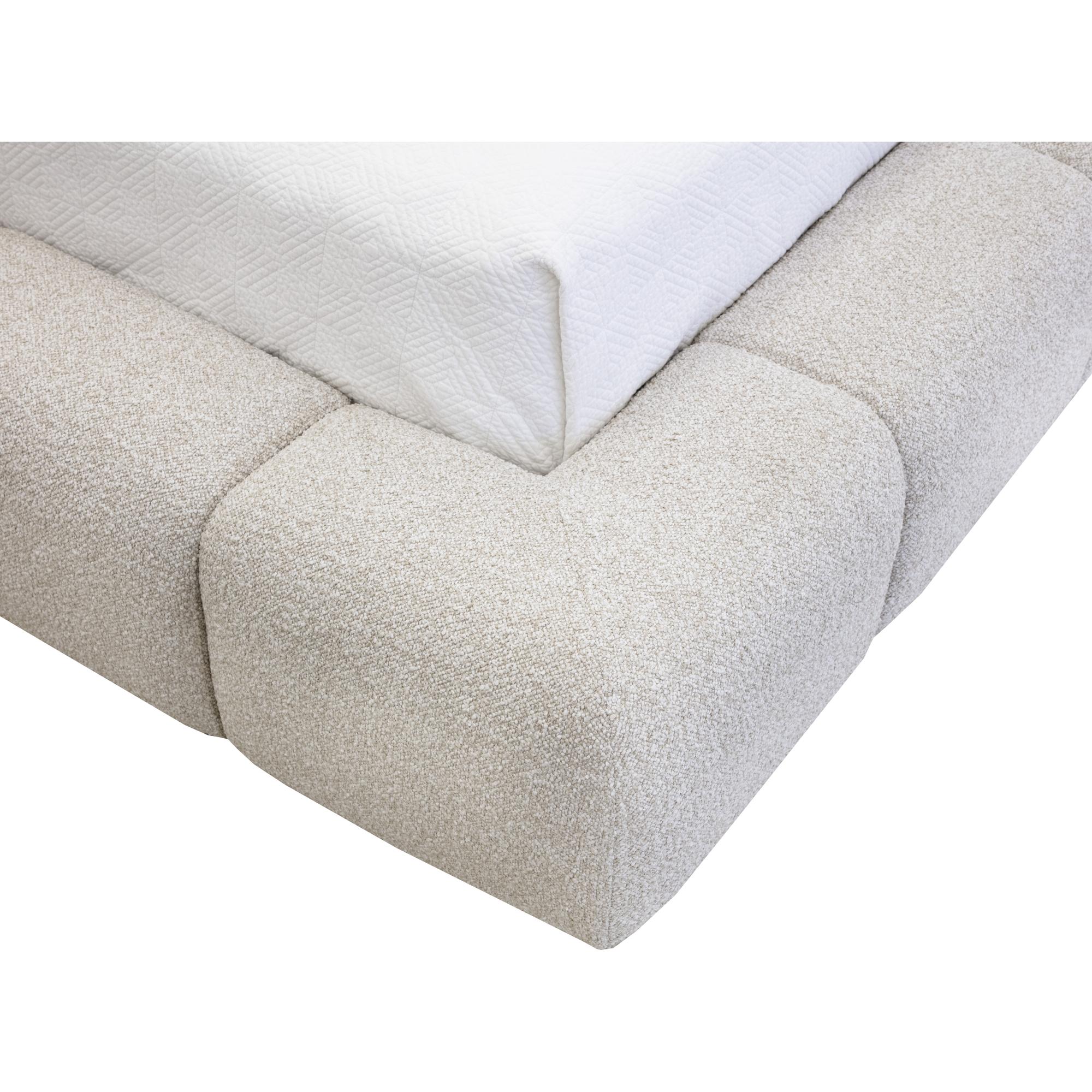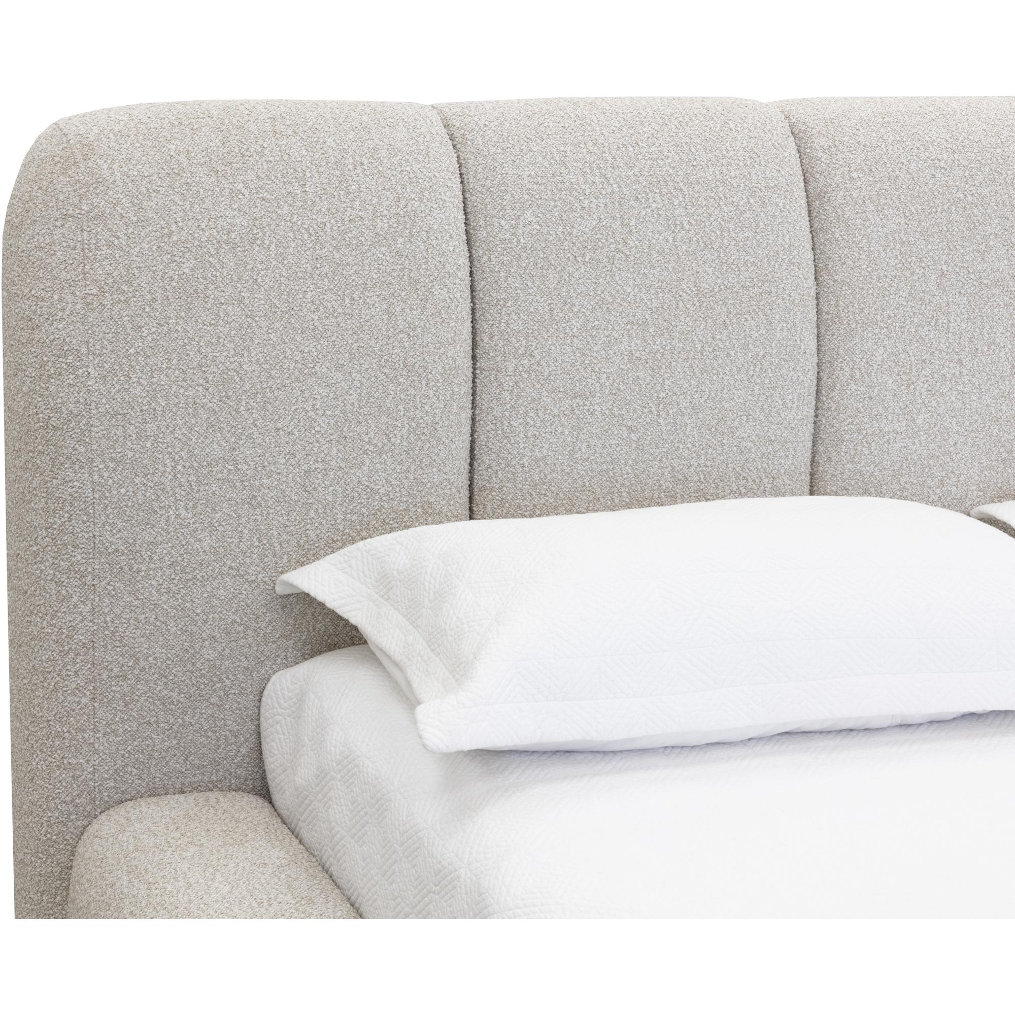 Embrace the luxuriously plush and cozy Olena Bed. A true statement piece that is generously cushioned and upholstered in our plush santa cruz oatmeal with vertical channels.