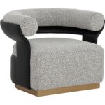 Generously curved and sculpted, the Olida Swivel Lounge Chair is a great show of contemporary style and personality. Expertly upholstered in hailey moon fabric and accented with nappa beige faux leather and a polished metal base for a demonstration of sharp and shapely ingenuity.