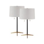 Enhance the ambiance of your living space with the Orono 25″ Tall Matte Black Iron Table Lamp. Each lamp features a sleek, black iron base with clean lines that complement any contemporary decor. Designed with a sleek matte black finish and a tapered cream linen shade, this lamp seamlessly connects with standard E26 sockets. It supports bulbs up to 100W, ensuring compatibility with a wide range of lighting options. The dimmer socket allows you to customize the lighting and set the perfect mood in your space. With a set of 2 lamps, you can create a complete ensemble that complements any interior design.