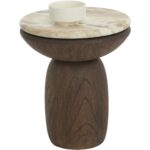 The Orula End Table takes its cue from nature’s softest forms. Sculpted from concrete, its plump, mushroom-like silhouette features a sturdy pedestal in brown oak finish and a swirling marble-finished top. It’s an accent piece that grounds your space with effortless charm.