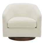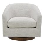 Deep blue and soulful. Calm and relaxed. The Oscy swivel chair is a cloud of comfort that brings airy energy and convenience into your living room with its 360° swivel, floating base design. Idyllic for a reading nook or as an accent chair, Oscy creates a chic retreat with softly textured fabric upholstery that looks fresh and keeps things cozy.