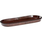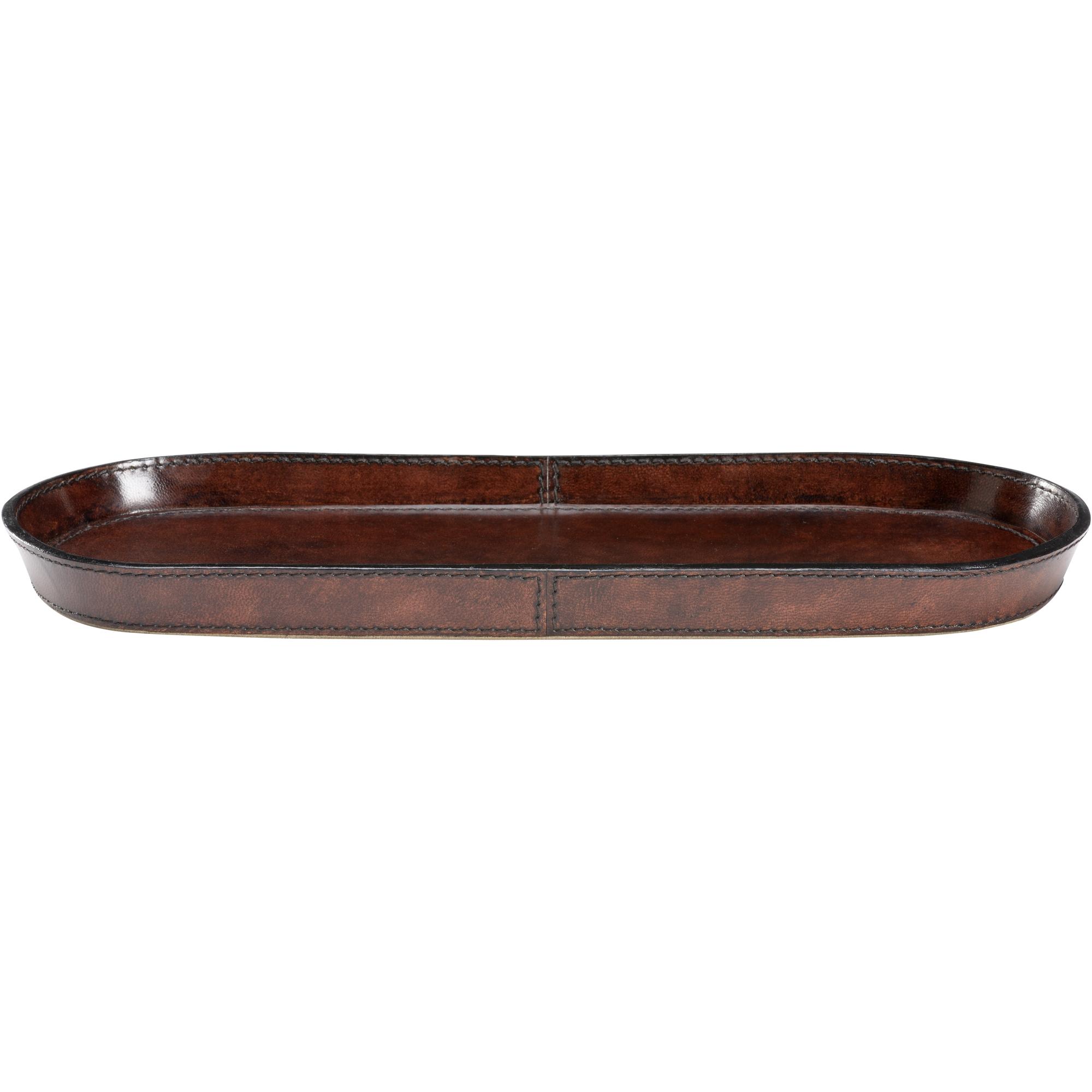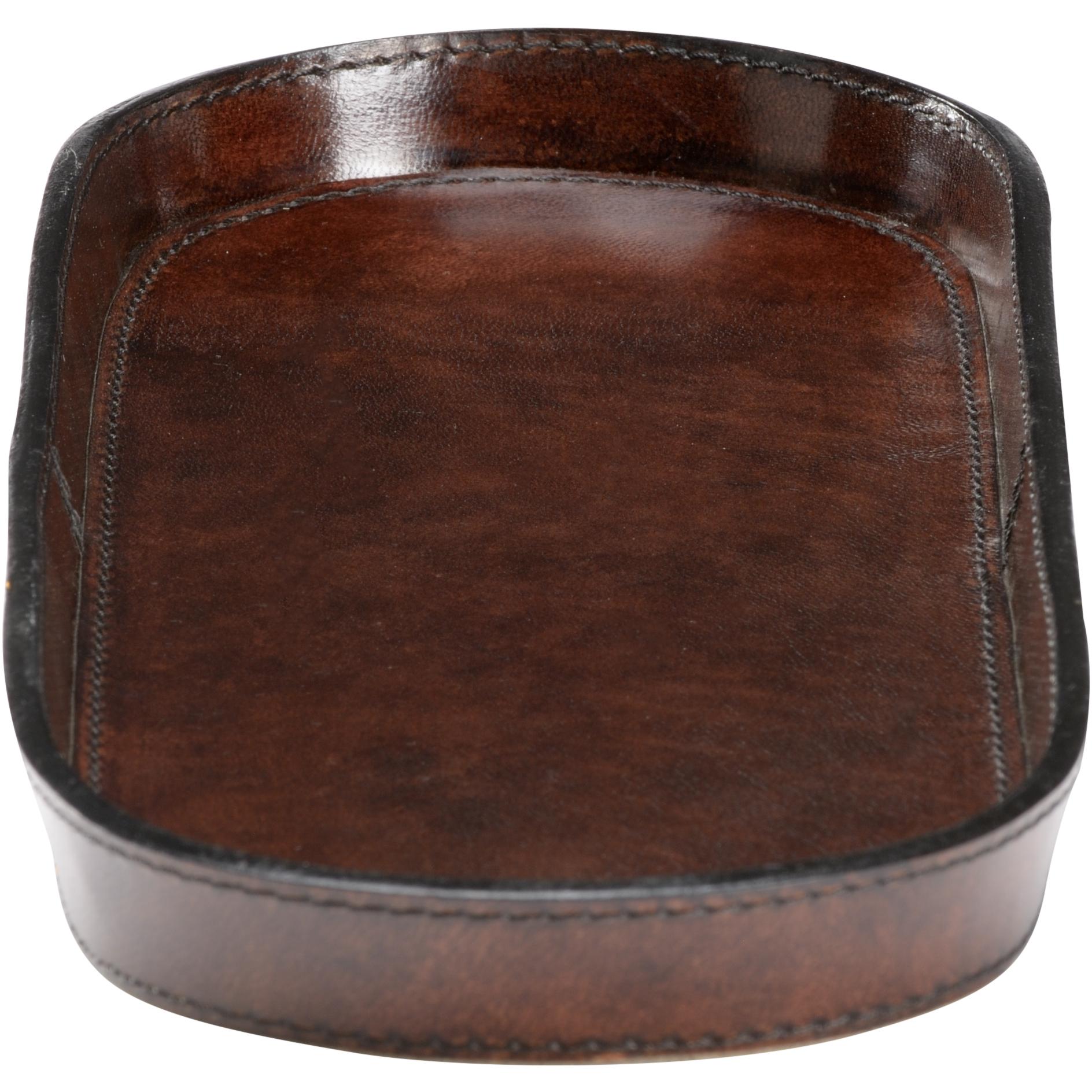 Rich, chocolate colored, oval leather tray. Perfect for entry hall, desk or bedroom. A luxurious catchall for everyday essentials such as phone, wallet and keys. Organization made beautiful.