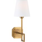 This sleek metal sconce features a modern silhouette with a bold square accent, adding a touch of architectural elegance. Finished in a rich aged brass, it exudes warmth and sophistication, making it a perfect statement piece for any contemporary or classic space. Designed by Jamie Merida.