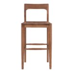 Available in oak, the Owing counter stool is a refined spin on the traditional. Its mid-height, curved, open-back design combines comfort with casual appeal, while its solid wood frame creates a timeless, mid-century silhouette.