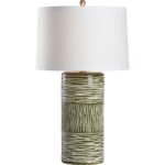 Inspired by the movement and pattern of natural straw, the Paglia Lamp is perfect for a nightstand or side table. The contrast of the green glaze and etched markings that reveal the natural ceramic make this lamp a striking piece. Made in Italy.