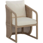 The eye-catching curved silhouette of the Palermo Dining Chair is sure to be an appealing addition to any outdoor space. The barrel backrest features a contrast of materials and colours with a combination of polyethylene cane wicker weave and charcoal teak wood. Comfortable cushioning is upholstered in our stinson cream fabric with sloped arms that give it a floating chair appearance. Suitable for indoor and covered outdoor spaces.