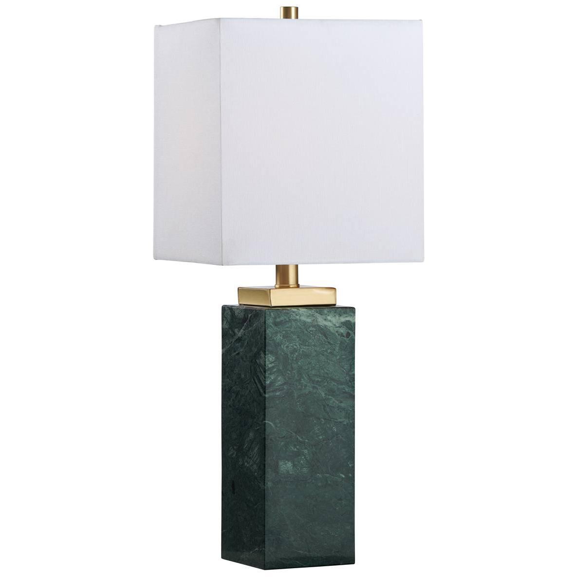 The Pax Table Lamp exudes quiet luxury with its striking green marble base and refined brass accents. Its geometric silhouette and clean lines make it a perfect blend of natural elegance and modern design. Topped with a crisp white rectangular shade, Pax delivers a balanced, ambient glow.