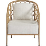 A sweetly curved silhouette intertwined with freely shaped rattan, as well as an upholstered seat and kidney pillow, define the Pebble Accent Chair, a warm yet wonderfully breezy home furnishing.
